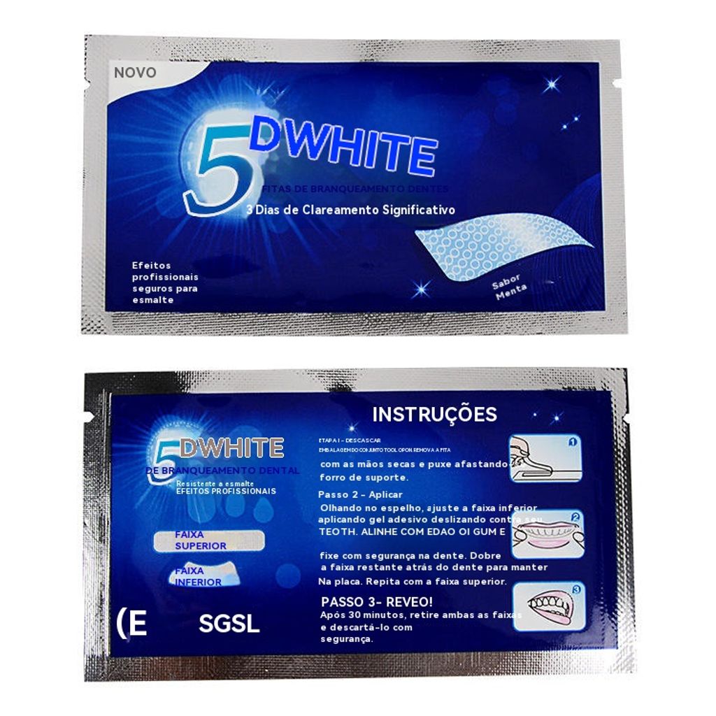 Fitas branqueadoras de dentes 5D - Consiga um sorriso branco e brilhante em casa em 3 dias!